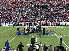 The Liberty Bowl was televised by ESPN, with a commentary team of Dave O'Brien, Dan Mullen, and Taylor McGregor.[21] The ESPN Radio broadcast was commentated by Clay Matvick, Rocky Boiman, and Tera Talmadge.[21] The game's officiating crew, representing the Pac-12 Conference, was led by referee Matthew Richards and umpire Michael Stephens.[2] The game was played at Simmons Bank Liberty Stadium in Memphis, Tennessee, where the weather at kickoff was sunny and 61 °F (16 °C).[4]