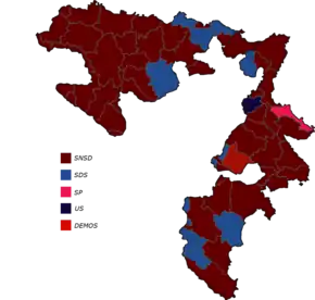 | Serb Democratic Party | 95,648 | 14.95 | 13 | 0 | 13 | +3 | ||