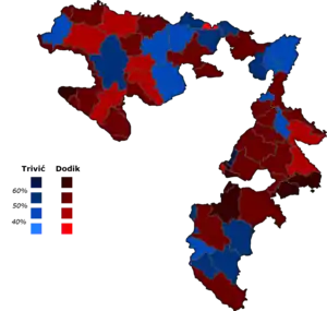 Following the release of the preliminary results, opposition parties filed accusations of electoral fraud direct against Milorad Dodik who they claimed coordinated stuffing ballot boxes with thousands of illegal votes to put the Alliance of Independent Social Democrats ahead in the polls and that Jelena Trivić was the true winner of the presidential election.[6][7] As a result of the allegations, the central electoral commission conducted a recount of the preliminary results for the Republika Srpska alongside the rest of the country's elections.[8] On 22 October, it confirmed the presidential and parliamentary results.[9] On 27 October, officials confirmed Dodik's victory. The commission noted that while there were irregularities, none were on a level that would have changed the outcome of the election.[10]