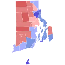 - ↑ @JegoPan (June 2, 2023). "Bonus: Here's also a map of the Rhode Island Lt Gov. race, which was the worst performing statewide race for Democrats, winning by a bit more than 8 points" (Tweet) – via Twitter.