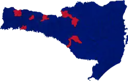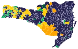 ![]() Candidate with the most votes per municipality in the 2nd round (295): Jorginho Mello (280 municipalities) Décio Lima (15 municipalities) | ||||||||||||||||||||||||||||||||||||||||||||||||||||||||||||||||||||||||||||