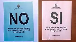 - ↑ "Se lanzó la campaña pro referéndum para derogar 135 artículos de la ley de urgencia". 14 July 2021. Archived from the original on 14 July 2021. Retrieved 26 March 2022.