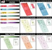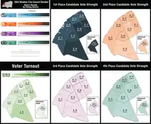 Ward 6 results breakdown by candidate vote strength & voter turnout.