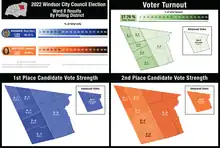 Ward 2 results breakdown by candidate vote strength & voter turnout.
