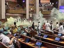 - 1 2 Rajesh, YP (13 December 2023). "Man jumps into Indian parliament, sets off smoke can in major security breach". Reuters. Retrieved 14 December 2023.