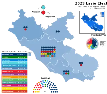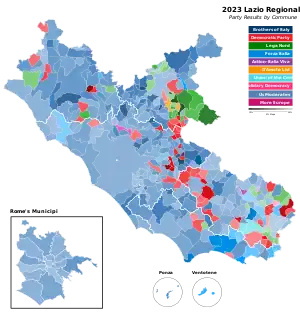 ![]() 2023 Lazio regional election map results | |||||||||||||||||||||||||||||||||||||||||