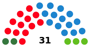 The City Council of Seville (Spanish: Ayuntamiento de Sevilla) was the top-tier administrative and governing body of the municipality of Seville, composed of the mayor, the government council and the elected plenary assembly.[1] Elections to the local councils in Spain were fixed for the fourth Sunday of May every four years.[2] Voting for the local assembly was on the basis of universal suffrage, which comprised all nationals over 18 years of age, registered and residing in the municipality of Seville and in full enjoyment of their political rights, as well as resident non-national European citizens and those whose country of origin allowed Spanish nationals to vote in their own elections by virtue of a treaty.