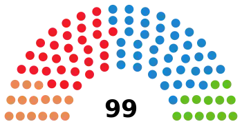 The 99 members of the Corts Valencianes were elected using the D'Hondt method and a closed list proportional representation, with a threshold of five percent of valid votes—which included blank ballots—being applied regionally. Seats are allocated to constituencies, corresponding to the provinces of Alicante, Castellón and Valencia, with each being allocated an initial minimum of 20 seats and the remaining 39 being distributed in proportion to their populations (provided that the seat-to-population ratio in any given province did not exceed three times that of any other).[4][7]