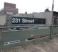 The 231st Street station is a local station on the IRT Broadway–Seventh Avenue Line of the New York City Subway. Located at the intersection of West 231st Street and Broadway in the Kingsbridge section of the Bronx, it is served by the 1 train at all times.
