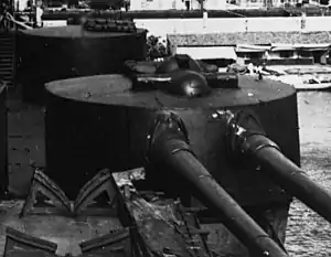 The guns were later used as coastal artillery after the ships were broken up, and served during the Second World War, notably in the Battle of Dakar. One open-top twin gun turret is preserved at the battery Castel Gorée, where it has been installed after 1934 to the older coastal defence armoured turret.