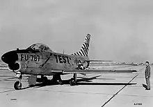 North American F-86D Sabre code-marked "FU-787" and "FU-775" were featured in 24 Hour Alert. The "Sabre Knights" aerobatic team was seen at the base air show.[3]