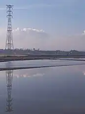 The 275 kV Forth Crossing has the tallest electricity towers (pylons[1] )in Scotland. They stand next to the Clackmannanshire Bridge and the Kincardine Bridge, and cross the River Forth. The tower at the southern end is 153.9 metres (505 ft),[2] that at the northern end 137.16 metres (450 ft) tall.[3]