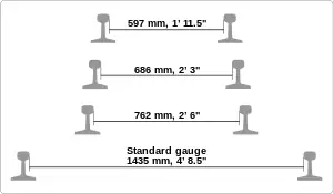 Narrow gauge railways in Britain used various gauges. 2 ft 3 in (686 mm) was relatively uncommon; in his book Railway Adventure, L. T. C. Rolt states that apart from the Talyllyn, the only public railways to use the gauge were the Corris and Campbeltown and Machrihanish railways.[2][lower-alpha 1] However there were several private railways, including mine and quarry railways, which used the gauge.