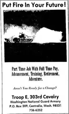 A 1977 newspaper recruiting advertisement for Troop E, 303rd Cavalry