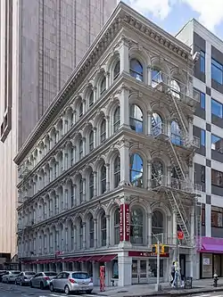 319 Broadway, also known as the Metropolitan Life Insurance Company Home Office, is a five-story office building on the corner of Broadway and Thomas Street in the Tribeca neighborhood of Manhattan, New York City. It is a cast-iron building in the Italianate architecture style, built in 1869–70 and designed by D. & J. Jardine. It is the lone survivor of a pair of buildings at 317 and 319 which were known as the "Thomas Twins". The cast iron for these mirror-twin buildings was provided by Daniel D. Badger's Architectural Iron Works. The building was designated a New York City landmark on August 29, 1989.[1]