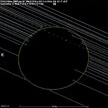 Since 2000, it has been observed 14 times in an asteroid occultation event, a number of which produced multiple chords revealing the asteroid's size and shape. On September 13, 2018, it was revealed to be 120 miles long (193 kilometers long). It is in a fixed orbit around the Sun between the orbits of Mars and Jupiter.[5]