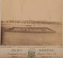 The regiment trained at Camp Meigs in Readville, Massachusetts just outside of Boston.[1] They departed Massachusetts on October 24, assigned to Maj. Gen. John G. Foster's Department of North Carolina, later designated as the XVIII Corps.[3] The regiment was stationed in New Bern, North Carolina. In December, the regiment took part in the Goldsboro Expedition. The objective of this maneuver was to disrupt the Confederate supply line along the Wilmington and Weldon Railroad by destroying the Goldsboro Bridge. During this expedition, was lightly engaged in the Battles of Kinston, White Hall and Goldsboro Bridge.[3]