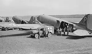 - ↑ Aircraft is Douglas C-47A-80-DL, serial 43-15135 of the 302d Troop Carrier Squadron
