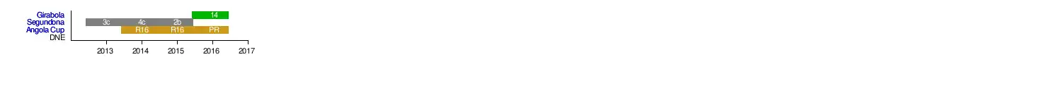 In 2015, the team finished 2nd in its series at the Gira Angola, Angola's second division championship and won a 2-leg playoff against the 2nd-ranked of the other Gira Angola series to secure a spot at the 2016 Girabola.[2]