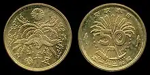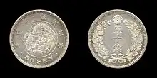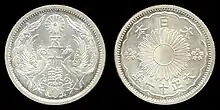 The 50 sen coin (五十銭硬貨) was a Japanese coin worth half of a Japanese yen, as 100 sen equalled 1 yen.[1] These coins circulated from the late 19th century to the early 1950s, when Japan adopted a single currency unit and this coin was demonetized.