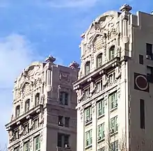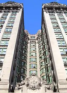 - ↑ Some sources place the number of stories as low as 14, although it is less than the number of publicly visible stories on the facade.[14][15] Emporis claims a figure of 17 stories.[11]