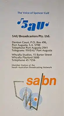 During the 1940s/1950s they relayed 5KA Adelaide programs in some day-parts. 5AU often broadcast balls from Whyalla and Hawker. Transmission power was upgraded (located at Nectar Brook 32.5 km south of Port Augusta) with an S.T.C. 2,000 watt transmitter in 1961. and relay transmitters at Port Pirie and Roxby Downs.