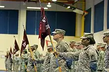 The Headquarters, 62nd Medical Brigade began initial planning for deployment as the medical brigade for Task Force Ironhorse, 4th Infantry Division from Fort Hood, Texas. The brigade was one element of the task force planned to enter Iraq through Turkey. When the northern option dissolved, the brigade deployed to Kuwait in February 2003, where it received its change of mission from V Corps, 900 km through Kuwait to Mosul, Iraq,[3] the brigade made it quicker and safer than any other Combat Service Support unit in theater. ATask Force Steadfast provided echelon above division combat health support to the 101st Airborne Division (Air Assault). The multi-component task force had representation from the National Guard, Reserves, and active component that provided command and control, hospitalizations, ground and air evacuation, preventive medicine, combat stress, medical logistics, and area medical support. The brigade headquarters redeployed to Fort Lewis in August 2003, with the last brigade's element returned in July 2004.