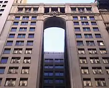 65 Broadway, formerly the American Express Building, is a building on Broadway between Morris and Rector Streets in the Financial District of Manhattan in New York City. The 21-story concrete and steel-frame structure, an office building, was designed by James L. Aspinwall of the firm Renwick, Aspinwall & Tucker in the Neoclassical style. 65 Broadway extends westward through an entire block, to Trinity Place. Its most prominent feature is its H-shaped building plan, with light courts located between its wings.[1]