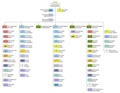 In 2004, the Corps disbanded 2 brigades (among them, the 52nd Mechanised Brigade in October 2004)[4] and 3 regiments. One brigade and one regiment were added. In 2006, the Corps almost doubled in size.
