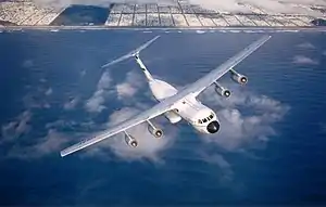 A Lockheed C-141A Starlifter flown by the 710th Military Airlift Squadron over the Pacific Ocean near San Francisco