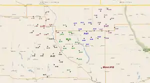 - ↑ Kirkpatrick, Jim. "Minot AFB Minuteman Missile Site Coordinates". University of Wyoming. Archived from the original on October 4, 2013. Retrieved April 20, 2019.