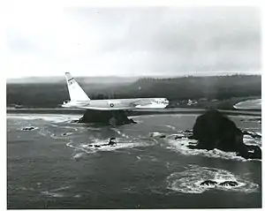 One half of the squadron's Boeing B-52 Stratofortress aircraft were maintained on fifteen minute alert, fully fueled and ready for combat to reduce vulnerability to a Soviet missile strike.[15] The squadron continued the mission of strategic bombardment training and participated in exercises and operational readiness inspections. However, "[i]n December 1965, . . . Robert S. McNamara, Secretary of Defense [announced] another phaseout program that would further reduce SAC's bomber force. Basically, this program called for . . . retirement of all B-52Cs and of several subsequent B-52 models."[16] The squadron became non-operational in April 1966, and was inactivated on 25 June 1966 in preparation for the closure of Larson.[13]