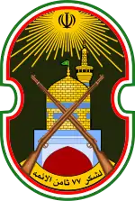 77th "Pirooz-e Samen-ol-A'emeh" Infantry Division of Khorasan (Persian: لشکر پیاده ۷۷ پیروز ثامن‌الائمه خراسان) is an infantry division of the Ground Forces of Islamic Republic of Iran Army based in Mashhad, Razavi Khorasan Province.[2] It was formerly being called 77th Infantry Division of Khorasan and was renamed to "The Victor of Samen-ol-A'emeh" (پیروز ثامن‌الائمه Pirooz-e Samen-ol-A'emeh) later after the successful Operation Samen-ol-A'emeh during Iran–Iraq War, which was led by this division.