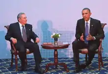 - ↑ Goodman, Joshua; Orsi, Peter (12 April 2015). "Obama-Castro Meeting Overshadows Anti-US Line at Summit". Associated Press. Retrieved 13 April 2015.
