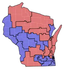 - ↑ Republican Roger P. Murphy (33rd District) resigned after he was appointed a Wisconsin circuit court judge.
