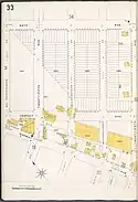 The streetcar line was built by the Nassau Electric Railroad in 1894 to make more profits for the company.[1] The company was later leased by the Brooklyn-Manhattan Transit Corporation.[2] In 1929 the company made a subsidiary company, the Brooklyn and Queens Transit Corporation, to run multiple Streetcar lines one of which was the 86th Streetcar Line. The line ran entirely on surface level except for the northern terminal where it went onto an island platform. The 86th Streetcar Line had connections to multiple lines including the Bay Ridge Line, West End Line and the Fifth Avenue Line.[3] In 1930, new tracks were made that split from the West End Line at 24th Avenue and went onto a right of way path used by trolleys to get to the Unionville Depot and onto Crospey Avenue.[4] The 86th Street line would then later merge back with the West End Line at the intersection of Crospey and Stillwell avenue. The line closed on August 12, 1948 and was demolished some time later.[5]