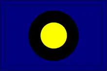 The "unit patch" for 8 Recce, worn on both shoulders of the battle dress. The bullseye is superimposed on the blue "formation patch" of the 2nd Canadian Infantry Division.