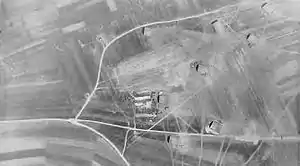 On the night of 31 July, the 90th was host to a small German bombing raid. The officers and men heard the planes overhead, and identified them as German Gotha G.V bombers by the sound of their motors. They dropped seven small bombs, three of which landed within twenty feet of the hangars; but by great good fortune did no damage beyond a few holes in the field, and these were filled in before daylight. In addition to the regular corps photographic work which the 90th was doing, they carried out a considerable number of Infantry Contact patrols near Chaumont, taking part in exercises with newly arrived divisions. A few adjustments of artillery with French batteries in the woods north of Boucq were also carried out.[9]