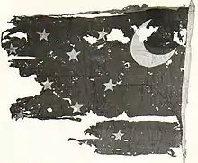 In May 1863, the regiment was part of Joseph E. Johnston army that tried unsuccessfully to relieve the Siege of Vicksburg. The unit fought in many skirmishes but there were no major actions.[3] On 4 June 1863, W. H. Jackson reported that Whitfield's cavalry brigade numbered 123 officers and 1,354 men present for duty in the 3rd, 6th, 9th, and 27th Texas. The 9th Texas was commanded by Colonel Dudley W. Jones.[26] In 1864 the regiment seized the gunboat USS Petrel.[1] During the 1864 Atlanta campaign, the 9th Texas Cavalry under Colonel Jones was part of Lawrence Sullivan "Sul" Ross's brigade in W. H. Jackson's cavalry division. This unit transferred from Mississippi to Georgia with Leonidas Polk's corps at the start of the campaign. It was composed of the same units as Whitfield's brigade.[27] Starting on 15 May 1864, for 112 days Ross's brigade was in continuous action.[3]