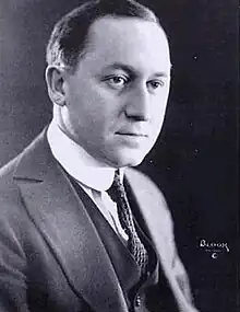 The remaining tributes are written by Frank Cambria and Morris Silver.[69] Writer Hal Halperin reported on how the issue came about, particularly that Balaban wanted nothing to do with it.[69] The publications displays numerous tribute advertisements from William Morris Sr., the William Morris Agency, the Skouras Bros., Sid Grauman, and a vast number of William Morris artists and others, including Harry Lauder, John Philip Sousa, Ted Lewis, Gus Kahn, Sophie Tucker, Ginger Rogers, and Jesse Crawford. And a separate box, containing Balaban's 1917 predictions for the business (originally published in the Chicago Herald Examiner in October of that year after the opening of The Central Park) is headlined "A. J. Balaban Predicted in 1917 Future Show Business of Today."[68][69]