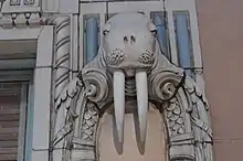 One of the terra cotta walruses adorning the Arctic Building. There was also a polar bear