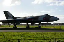 Next[37] to the runway at Waddington is an old Vulcan, carrying the number of the plane that bombed Port Stanley.
