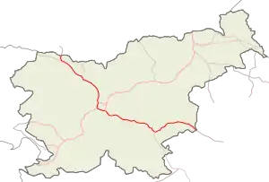 The A2 motorway (Slovene: avtocesta A2, Ilirika) is a motorway in Slovenia, around 180 km long, connecting the Karawanks Tunnel (at the Austrian border) via the capital city Ljubljana to Obrežje (at the Croatian border, near Zagreb). It connects several major Slovene cities, including Kranj, Ljubljana, and Novo Mesto, and is part of Pan-European Corridor X.