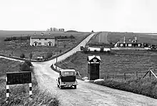 In 1958, the Ministry of Transport upgraded the A303 to trunk road status. It believed it was easier to upgrade than the parallel A30 as it passed through fewer towns.[21] Initial improvements to the road in the 1960s included widening small sections to 3 lanes (forming the so-called suicide lane) or to dual carriageway; but none were longer than 2 miles (3.2 km).[22] Andover and Amesbury were bypassed in 1969,[23][24] while general improvements to the road, including additional dualling, took place throughout the 1970s.[25]