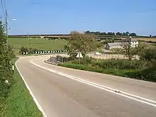 The A303 is of a lower standard west of Ilminster. It passes through the Blackdown Hills as a narrow road following the contours of the land, with the exception of a dual-carriageway bypass of Marsh.[8] The end of the A303 is reached where it joins the A30, which enters as a side road and continues as the main route forward for Honiton and Exeter.[4]