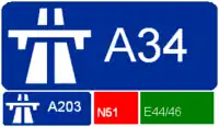 Autoroute A34 is a toll free motorway in northeastern France, approximately 98 kilometres (61 mi) long. It is an upgrade of the N43 and N51. It links Sedan with Reims. It forms part of European routes E44 and E46.