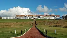 At the southern end of the A719, the road runs close to Turnberry Castle, believed to be birthplace of Robert the Bruce, and the Trump Turnberry golf resort.[6] The road runs through the centre of the Turnberry resort, with the hotel on one side and the course on the other.[7]