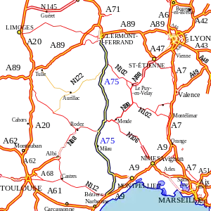 Known also as la Méridienne, it is a developmental project with the aim of speeding up and reducing the cost of car travel from Paris southwards, and apart from the Millau Viaduct, it is entirely free for the 340 km (210 mi) between Clermont-Ferrand and Béziers. It was due for completion in spring 2011,[1] but was fully open in December 2010.