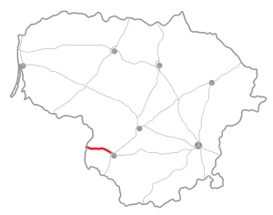 The A7 highway is a highway in Lithuania (Magistralinis kelias). It connects Marijampolė and Russian border (Kaliningrad Oblast) near Kybartai. From there, the road continues to Kaliningrad. The length of the road is 42.21 km. Major cities near the road are Vilkaviškis, Virbalis and Kybartai.