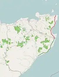 The A99 road is entirely within the former county of Caithness in the Highland of Scotland. It runs generally north/northeast from the A9 at Latheron to Wick and to the A836 at John o' Groats.[1] It was part of the A9 until the A9 classification was transferred to what had been the A895-A882 link between Latheron and Thurso. Between Latheron and Wick it follows, mostly, the route of one of Telford's roads.